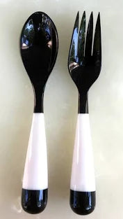 SHORT HANDLE SALAD SERVERS IN SOLID BLACK